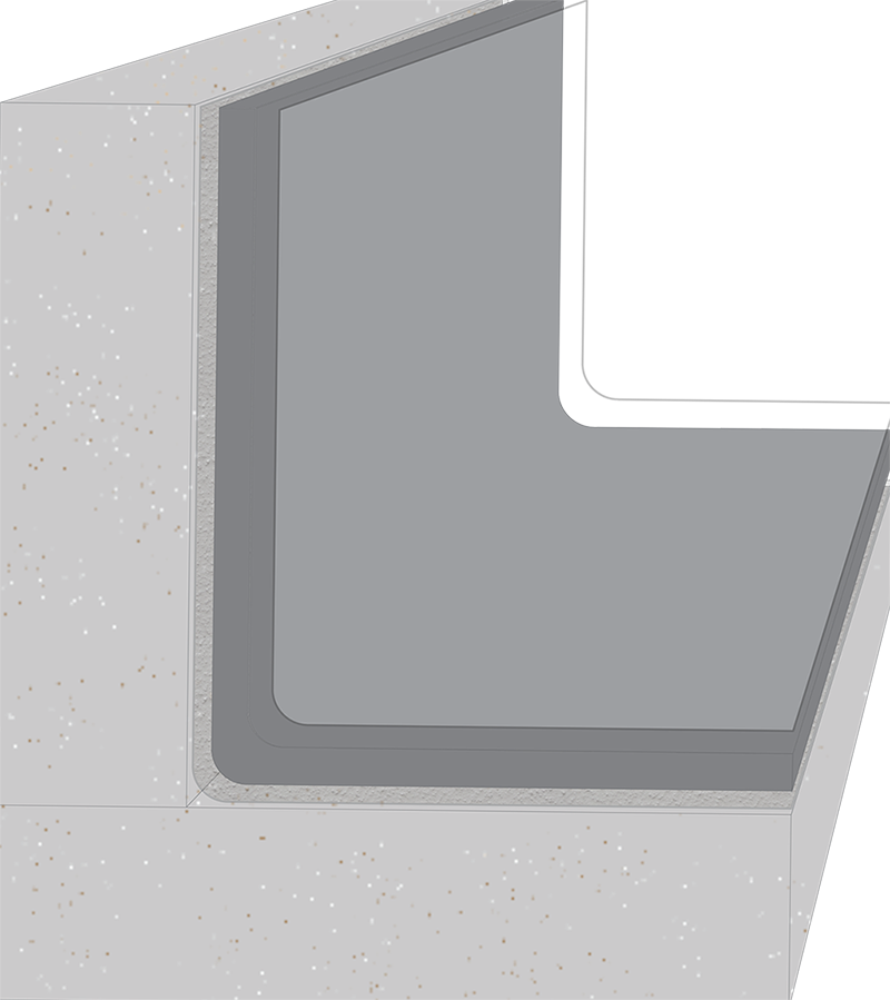 Integral Troweled Epoxy Cove Base puede ser instalado en paneles de yeso, concreto o blocks de concreto. La altura del calado puede cambiar para mantener la integridad del sistema.
